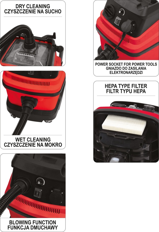 Profesionāls industriālais putekļsūcējs YATO ar jaudu 1600W un sūkšanas jaudu 18kPa. Tam ir 30 L. konteiners. Putekļsūcējs var būt mitrs un sauss. Aprīkots ar pūtēja funkciju. Paredzēts izmantošanai būvlaukumos, galdniecības un lakošanas darbnīcās. Tas atbilst augstākajiem standartiem smalko piemaisījumu, piemēram, ģipša un oša attīrīšanā no lapu koku koksnes (ozola, oša).